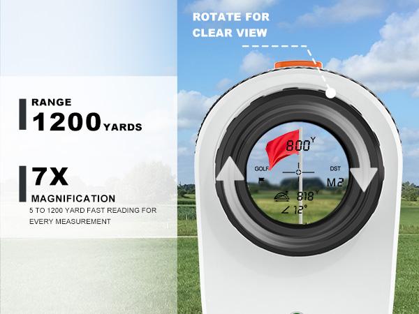 Unmatched Range & Accuracy The rangefinder measures distances from 5 to 1200 yards with an impressive accuracy of ±0.5 yards. Quickly switch between yards and meters to suit your preference, ensuring precise measurements for every shot. The transflective LCD display and 7x magnification provide crystal-clear readings, even under bright sunlight.