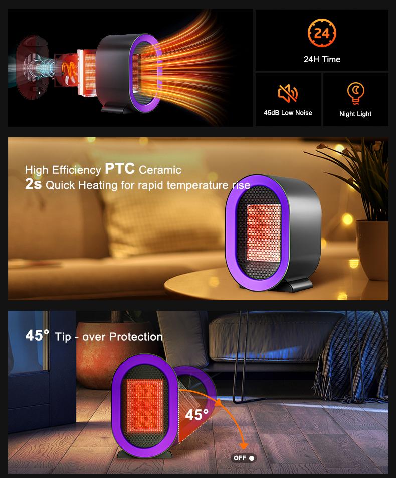 This heater fan combines functionality with safety, making it an essential for any room. Its design focuses on providing warmth while ensuring user safety. Enjoy a comfortable atmosphere without worrying about overheating or tipping over.